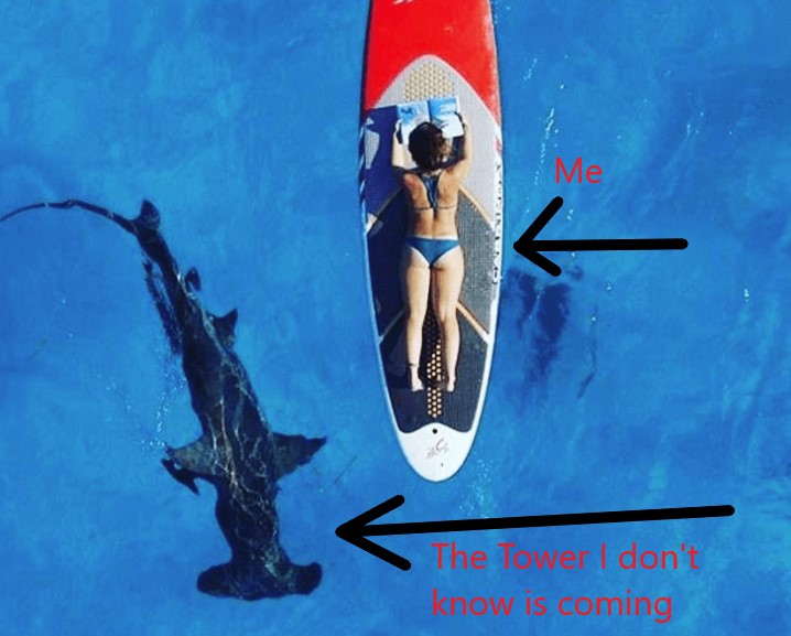 For me, the story I just described perfectly captures the essence of the tarot’s Tower card. More specifically, when the parents realized and fully processed that they were in fact heading in the opposite direction of Disney, it was a tower-card moment. When so much time and energy has been invested in something, it can be difficult to face that we have been going in the wrong direction, working toward the wrong things, using straw or sticks instead of bricks, building castles on foundations of sand. The sooner we have the realization that things are not as we assumed they were, which can feel like a life-jolting epiphany, the sooner we can turn the car around or make some other plan, such as driving to the nearest airport and boarding a flight to Orlando.